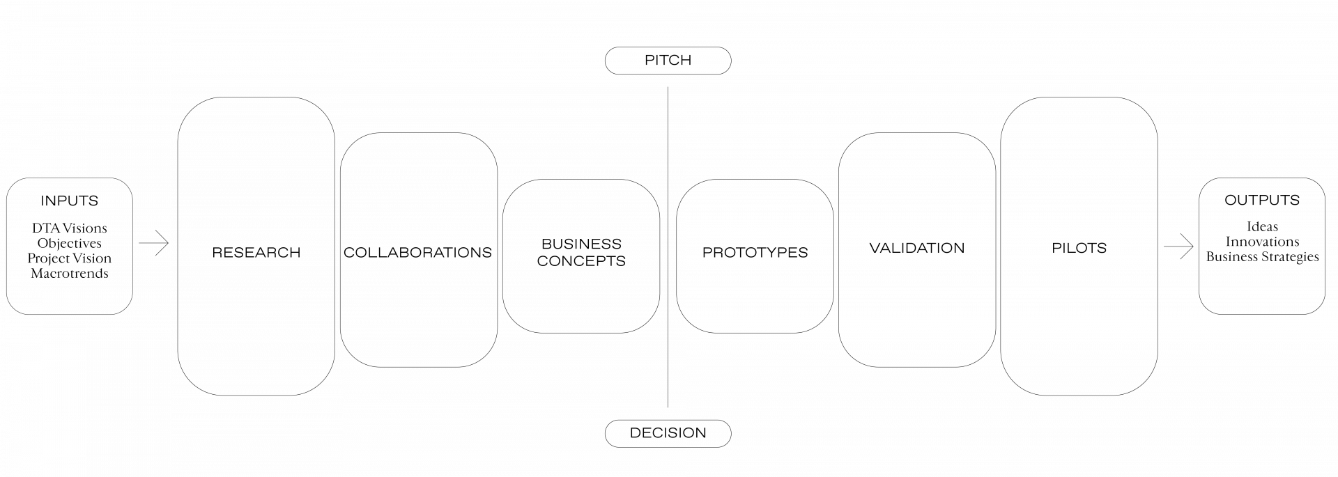 Collaboration is absolutely essential to our method of working. We know that in order to develop the best solutions, we need to work with the best talents — and it’s simply impossible to try to cultivate all of that talent in-house. Rather, we often take more of a facilitating role: defining briefs and challenges, curating collaborators, guiding their work and, finally, translating their outcomes into concepts and strategies that we can then plug into the DTA matrix.